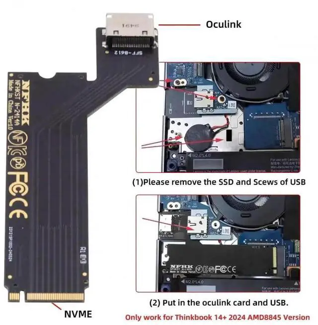 PCI-E 4.0 M.2 M-key to Oculink SFF-8612 SFF-8611 Host Adapter for 2024 ThinkBook 14+ AMD8845 External Graphics Card & SSD