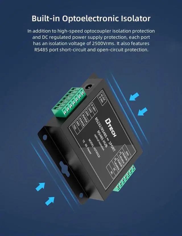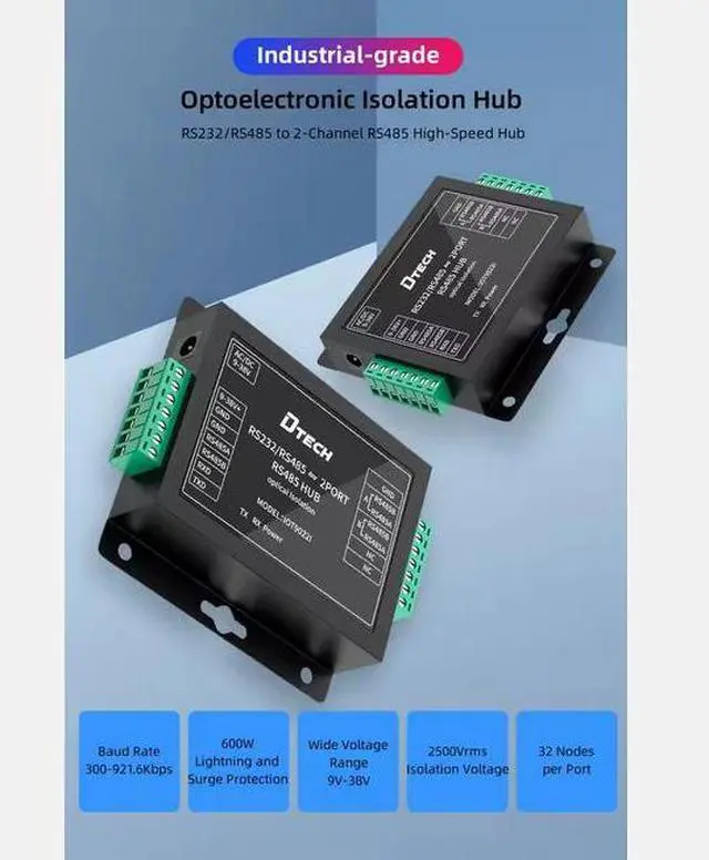 This industrial communication hub provides reliable signal conversion and expansion for RS485 networks while offering superior protection against industrial electrical interference, making it ideal for factory automation, energy management, and infrastructure monitoring applications.