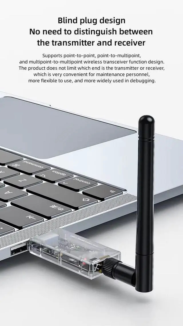 This USB wireless transceiver provides a flexible solution for converting USB serial communications to long-range wireless transmission, enabling easy deployment of monitoring and control systems without the constraints of wired connections.