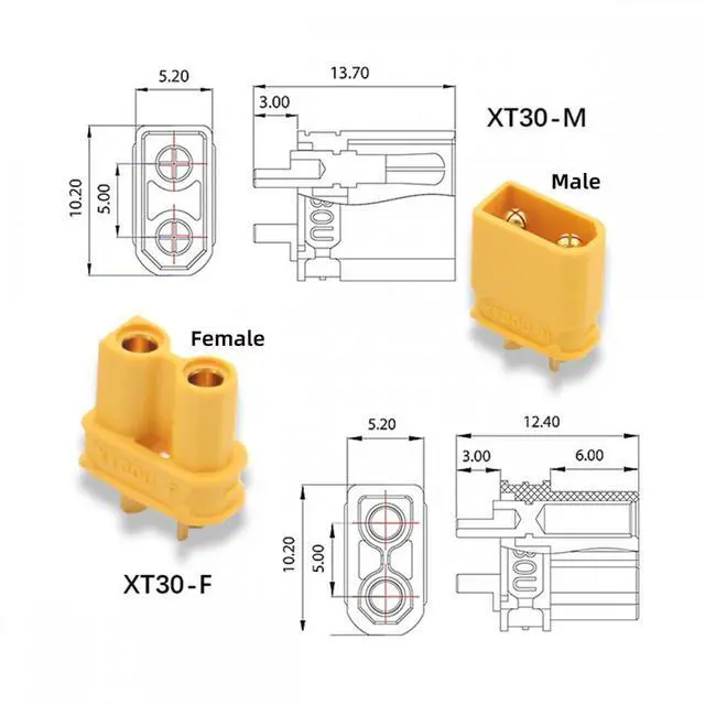 Connector 1: XT30 Connector; Connector 2: XT30 Connector.