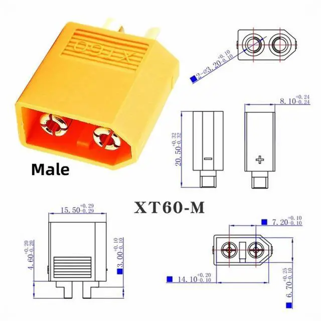 XT60 connector use gold plated plug, corrosion resistance, plug-in resistance, provide maximum conductivity and durability, to ensure stable current transmission.
