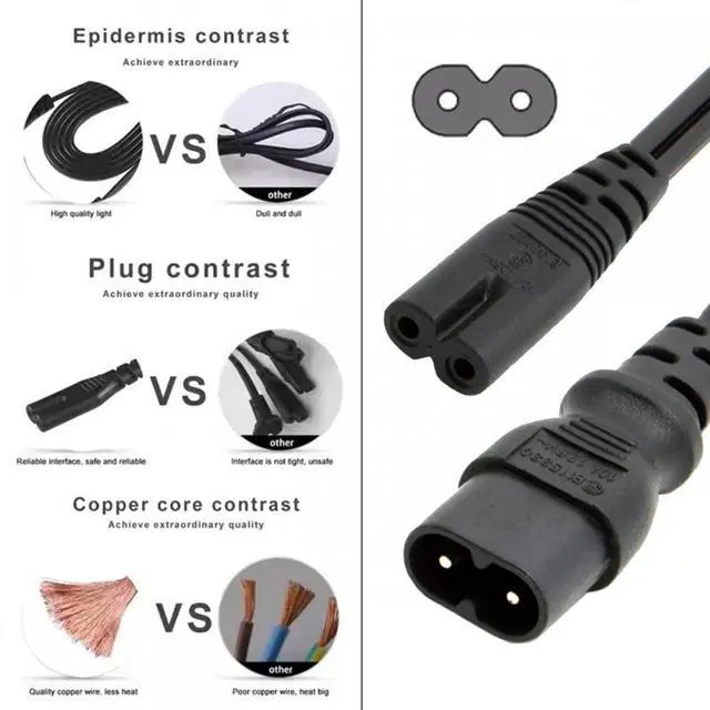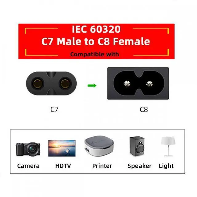 Cord IEC60320 C8 Plug to C7 Receptacle Male to Female Extension Supply Main Adapter Cable 30cm.