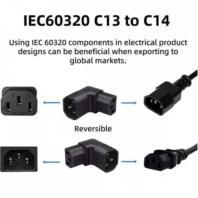IEC Male C14 to Right Angled 90 Degree IEC Female C13 Power Extension Adapter