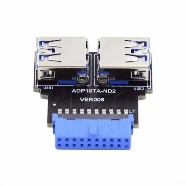 Dual USB 3.0 A Type Female to Motherboard 20/19 Pin Box Header Slot Adapter 5Gbps Horizontal Type PCBA