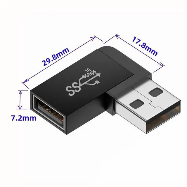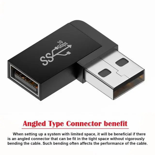 Angled USB 3.0 Adapter, Type A Male/Female,Support 10Gbps data transfer rating.