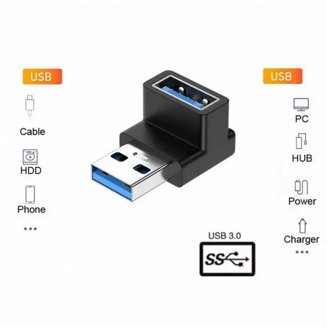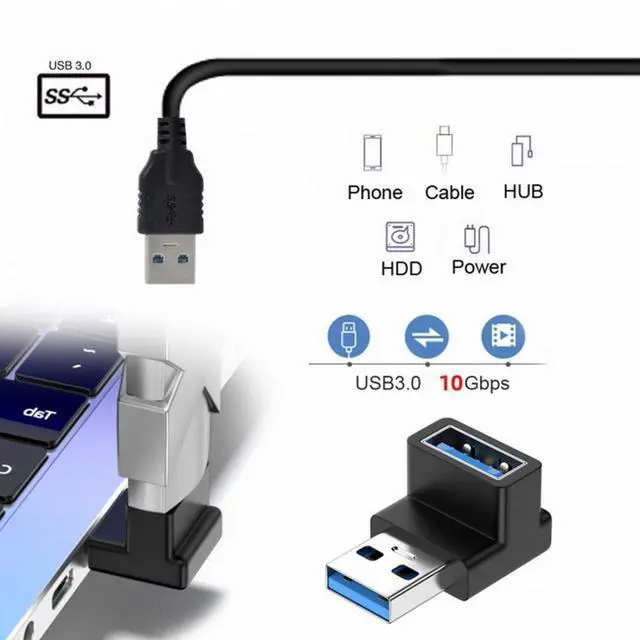 Angled USB 3.0 Adapter, Type A Male/Female,Support 10Gbps data transfer rating.