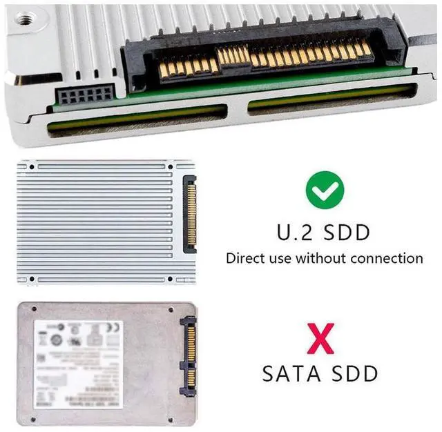1) Need M-key or NVME SSD, the B-key or B/M-key SSD cannot work; Connector: U.2 SFF-8639 male 67 pin M.2 NGFF key M slot.
