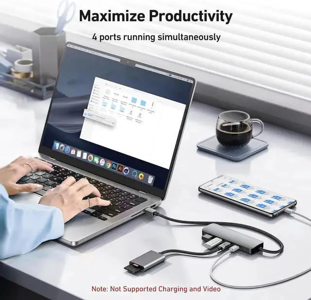Hub: With its sleek and compact design, and superior functionality, effortlessly expands one USB port into 4 high-speed USB 3.2 ports, supporting simultaneous connection of 4 USB devices. Frees up USB slots on your computer, allowing for more convenient connection of additional devices.
