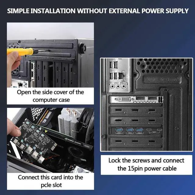 Easy to Use: Each port supports a maximum power of 5W (5V/1A), the pcie usb card can be powered from the PCI-E slot, no external power supply is required,and the installation is easy. In addition, each interface has independent insurance, with over-current and short-circuit intelligent protection to protect your computer equipment