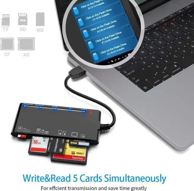Wide Compatibility: Plug and play, no driver needed. Multi card reader is compatible with Micro SD (HC), SD, SDHC, SDXC, MMC, MS PRO DUO MSHG, MS Micro, M2 Micro SD (HC), CFI, CFII, XD, XD 1.21 and more. Compatible with laptop, desktop, and tablet with USB ports. Perfectly for Windows, Mac OS, Linux, Chrome OS.