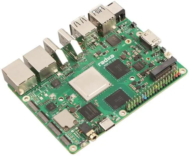 Experience powerful computing capabilities with the Radxa ROCK 5T single board computer, featuring the advanced RK3588 8-core CPU and cutting-edge LPDDR5 RAM. This versatile board delivers impressive performance with its 6 TOPs NPU and supports stunning 8K HDMI output for crystal-clear visual experiences. The dual M. 2 M Key connectors provide excellent expansion possibilities, while the Penta SATA Hat add-on enables extensive storage options with up to 100TB capacity. Measuring just 3.5 x 3.5 x 0.5 inches, this compact powerhouse is compatible with Raspberry Pi 5, making it perfect for both enthusiasts and professionals.