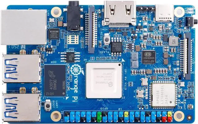 [High-Performance RISC-V Processor]: OrangePi RV is a RISC-V development board featuring a powerful JH-7110 processor. With a 4-Core 64-bit architecture and a stable operating frequency of 1.5GHz, this board offers richer high-speed interfaces and integrated GPU, enabling stronger image processing capabilities, such as 3D rendering.