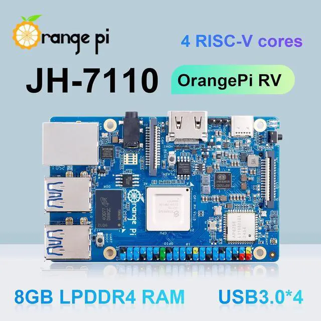 Orange Pi RV 2GB LPDDR4 RISC-V Single Board Computer with StarFive JH7100 4-Core 64-Bit Processor, Wi-Fi 5.0/Bluetooth 5.0, Development Board Run Linux/Debian (8GB)