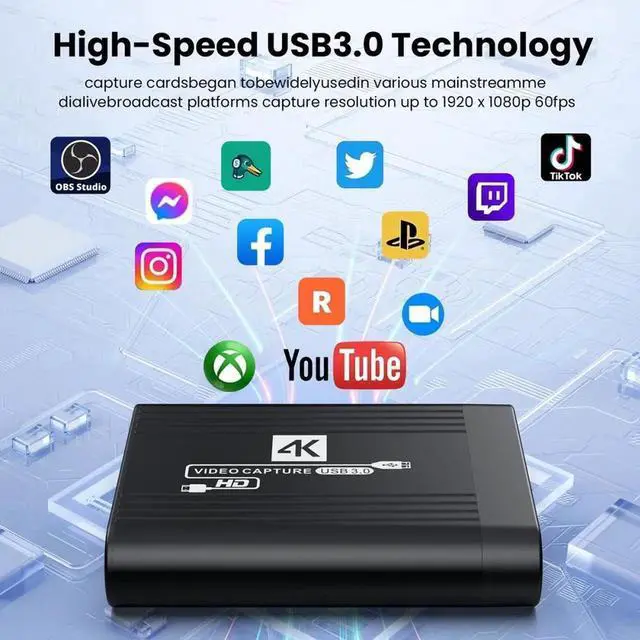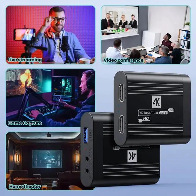 • The capture card is suitable for streaming, video conferencing, live broadcasting, game broadcasting, screen recording and other usage scenarios. the HDMI video capture card supports up to 4K 60fps input and Full HD 1080p 60fps HDMI video capture.