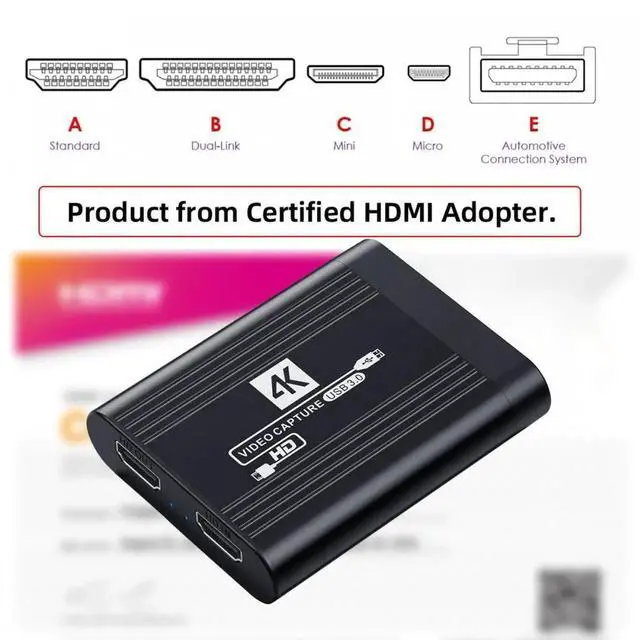 • HDMI Capture Card 4K Video Live Streaming USB Data for Camera Game Set-Top Box Recording Computer DVD