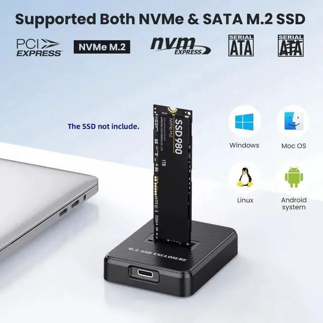 This USB 3.0 to M. 2 SSD Enclosure only for NVMe PCIE M-Key / B+M connectors M. 2 SSD. Applicable to sizes 2242 / 2260 / 2280 solid state drivers.