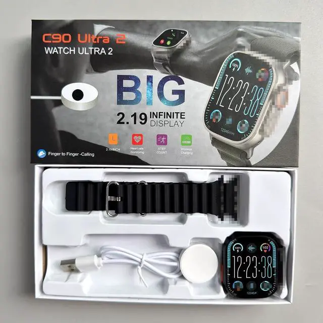 New Watch 10 Ultra Smart Watch 49mm 2024 New NFC Men Women C90U Foreign Language Version - Black