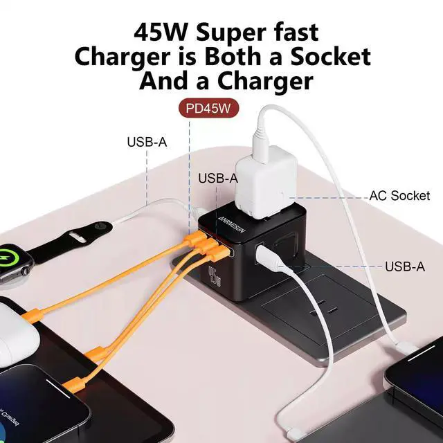 Features 2 USB-A ports and 3 Type-C ports, allowing you to charge up to 5 devices simultaneouslyperfect for families or travelers with multiple gadgets.