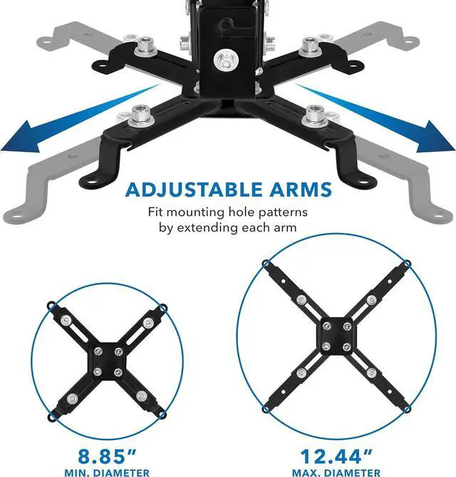 Universal Compatibility: Fits most projectors with mounting hole patterns between 8.85 " and 12.44 ". Designed for business, education, or home use, this universal projector mount works with brands like Epson, BenQ, and Optoma.