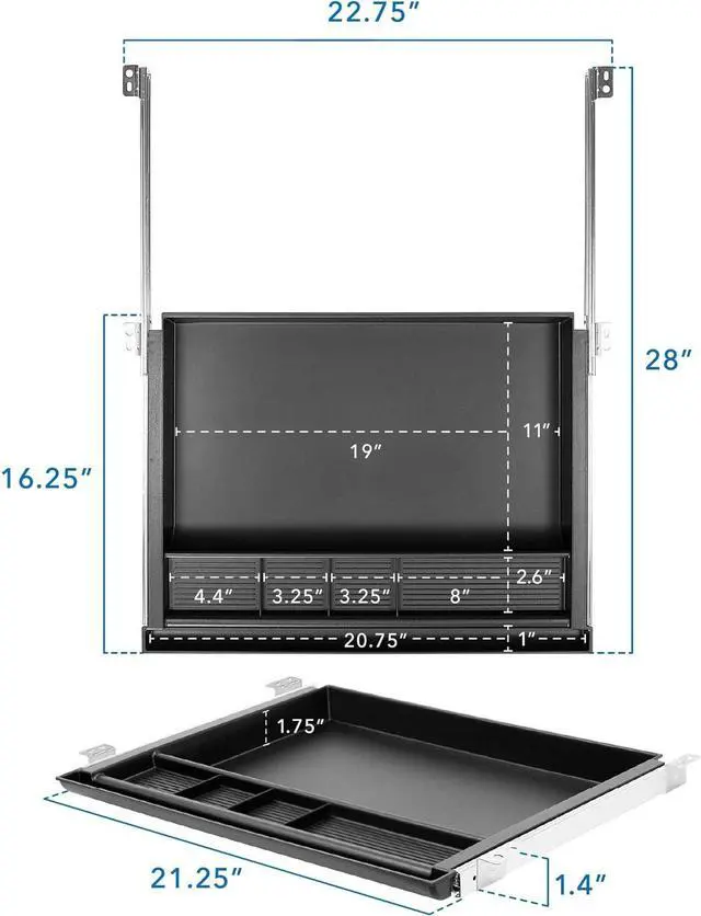 MULTIPURPOSE VERSATILITY: This add on pencil drawer fits perfectly under your desk and provides a wide variety of intuitive uses. This under desk tray is multipurpose and is an ideal upgrade to any kind of office, garage, or workplace.