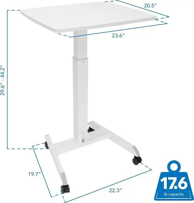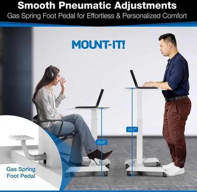 Effortless Height Adjustability: Transition seamlessly from sitting to standing with the pneumatic foot pedal on this rolling laptop cart adjustable height. Smoothly adjust from 29.6 to 44.2 to improve posture, reduce back pain, and work more comfortably.