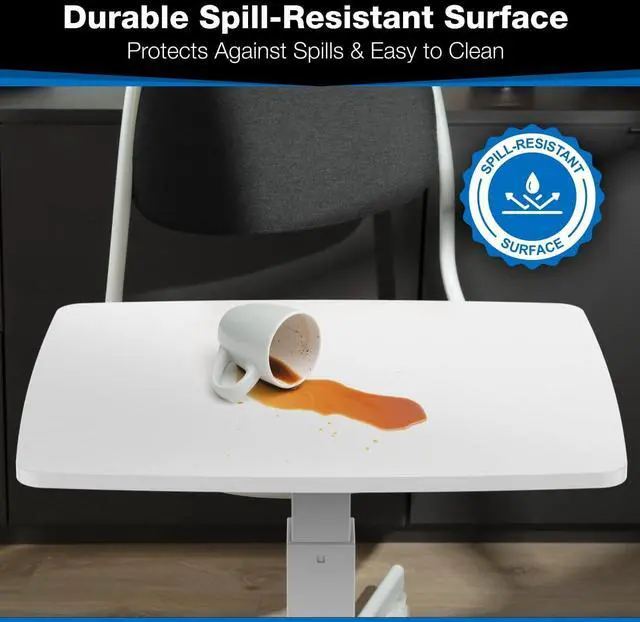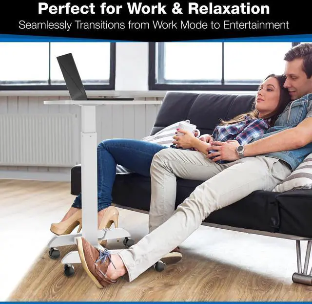 Built for Mobility: Effortlessly glide this rolling desk with wheels across any surface with four omnidirectional caster wheels. Lock two wheels for stability, making it perfect for dynamic workstations, presentations, or bedside use.