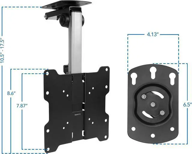 Under cabinet TV mount fits flat screens with VESA mounting bolt hole patterns of 75, 100, and 200mm (measure distance between bolt hole pattern found on the back of the display, in millimeters, if unsure of size). Holds screens up to 44 pounds.
