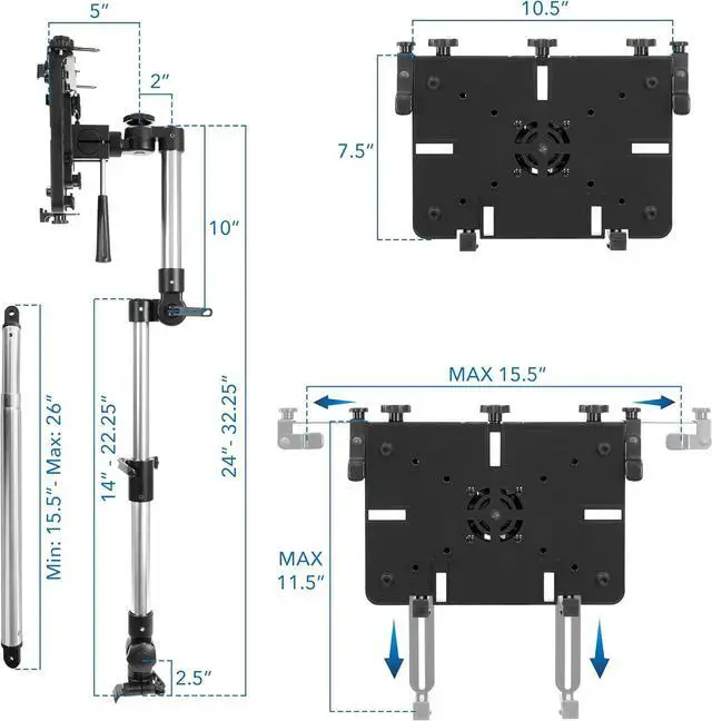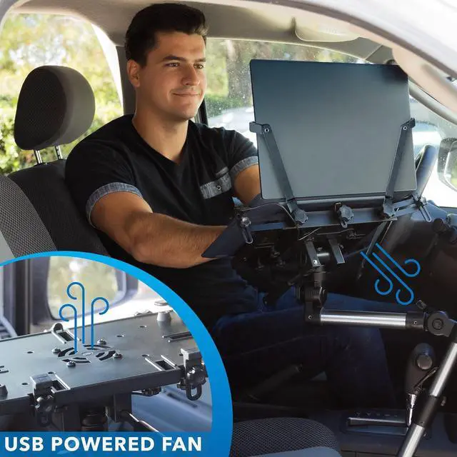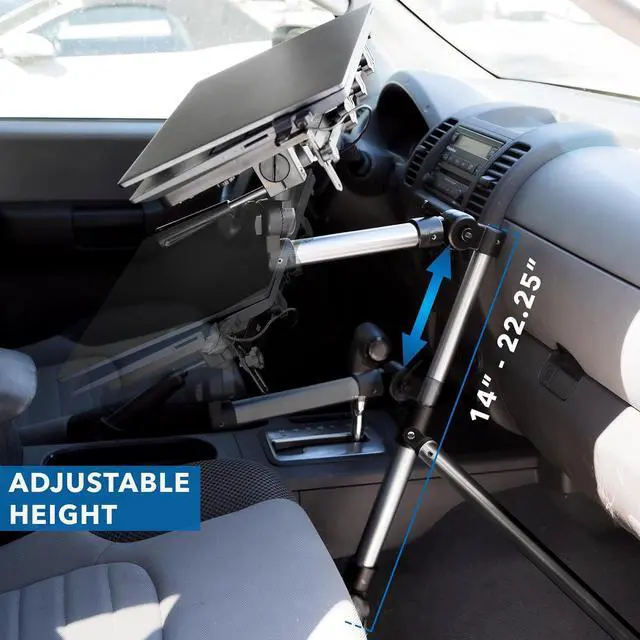 Mount-It! laptop vehicle mount provides a convenient and secure mounting solution to your laptop. Connects to the bottom of the passenger seat rail with no drilling required.