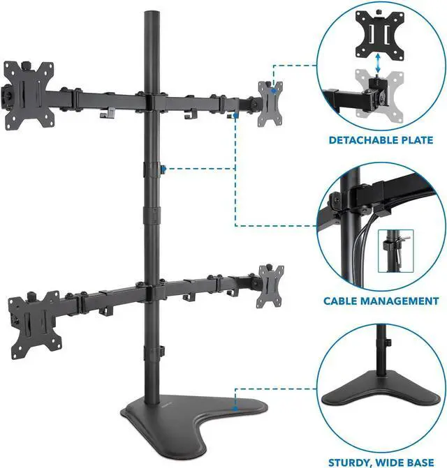 EASY INSTALLATION: Detachable VESA heads allow you to easily attach your monitors for hassle-free mounting. Utilize the cable management clips to keep an organized workspace.