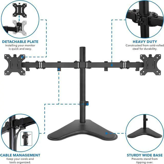 Dual Mounting Options: Equipped with both a freestanding base and a grommet option, this dual monitor stand offers flexibility in its placement on your desk. Choose the mounting option that best suits your workspace needs.