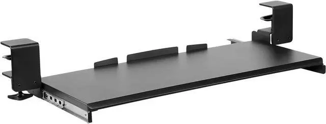 EXTRA LARGE PLATFORM: Measures 27 inch wide and 11 inches deep and fits both a full size keyboard and mouse comfortably with extra room to spare. Overall width with the clamps is 33 inches. Please ensure you have adequate space for the clamps.