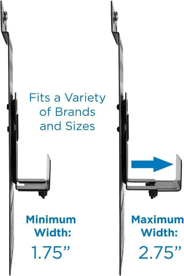 ADJUSTABLE WIDTH between 1.75 and 2.75 inches. 5 inches wide and 5 inches high cradle firmly holds your device. Additional metal plate allows horizontal and vertical installation.