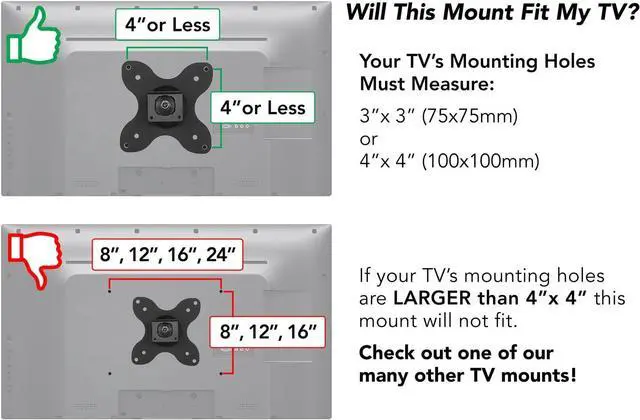 COMPATIBILITY: TV monitor wall bracket can be used with *any* brand of television or PC monitor so long as it has the 75mm or 100mm VESA bolt hole pattern. (measure the distance between bolt holes, in millimeters, if unsure of VESA pattern size).