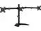 FEATURES: Free standing monitor desk stand has full motion, height adjustable arms and is made of heavy duty steel and have integrated cable management on each to keep your cables out of sight. VESA plates are removable, which makes for easier mounting. Comes with stable free standing base for desktops.