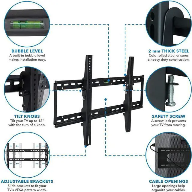 EASY INSTALLATION: Everything you need to get your TV mounted in your home is included in the box. Our flat tv mount includes a safety bracket locking system for extra security to your installation.