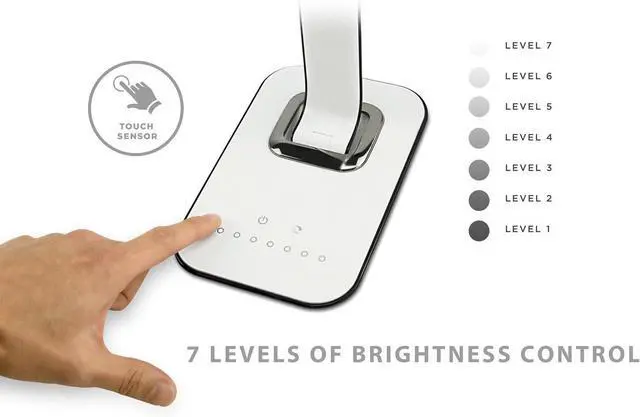 7 BRIGHTNESS LEVELS & 5 COLOR MODES: Choose from warm, neutral, or daylight settings with customizable brightness to suit reading, studying, relaxing, or working. The perfect dimmable desk lamp for home office lighting, bedside tables, and dorm rooms.