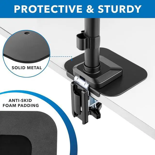 DISTRIBUTE WEIGHT EVENLY: The steel monitor mount plate reduces stress by evenly spreading weight, protecting desks from scratches and enabling support for heavy-duty setups.
