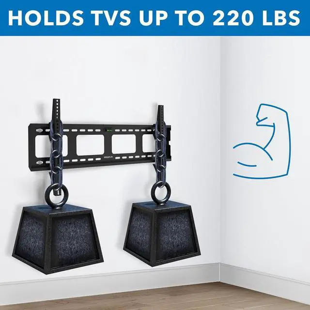 Heavy-Duty Steel Construction Holds Up to 220 lbs. Built from high-strength steel, this heavy-duty TV wall mount provides rock-solid support for large and premium TVs, ensuring safety and stability.