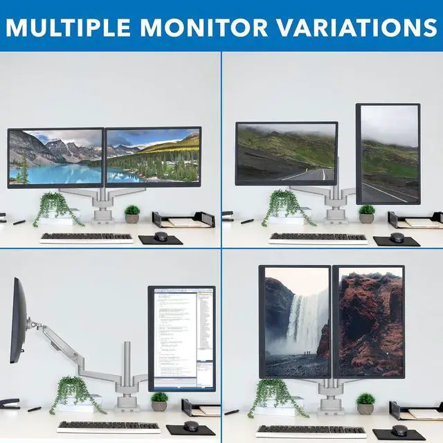 Full Motion Flexibility: Enjoy complete control over your monitor positioning with 45 degrees of tilt up and down and 360 degrees of swivel. The monitors can also be rotated 180 degrees for portrait or landscape orientation, providing versatile viewing options.