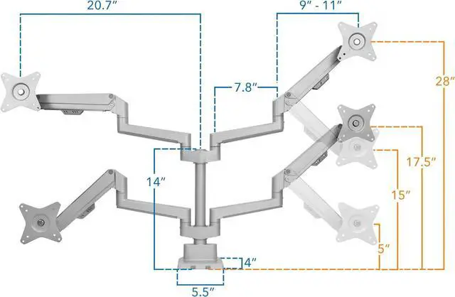 Effortless Height Adjustment: The gas spring arms counterbalance the weight of your monitors, making height adjustments smooth and effortless. You can raise or lower the monitors up to 23 inches to achieve the perfect viewing height.