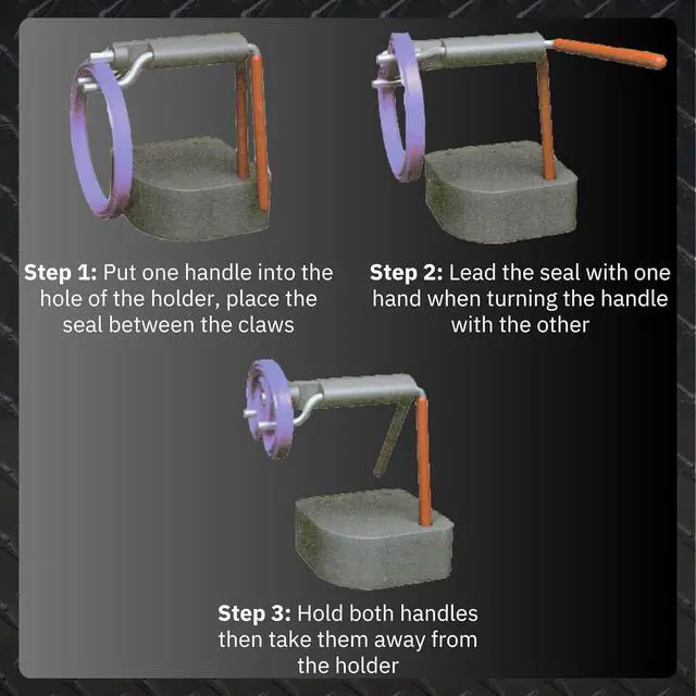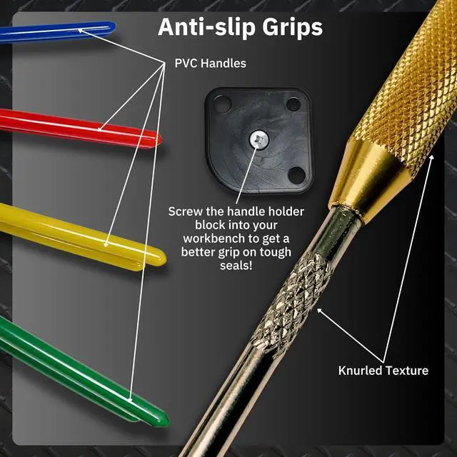 Also includes a plastic block handle holder you can screw into your work bench for help on tough seals.