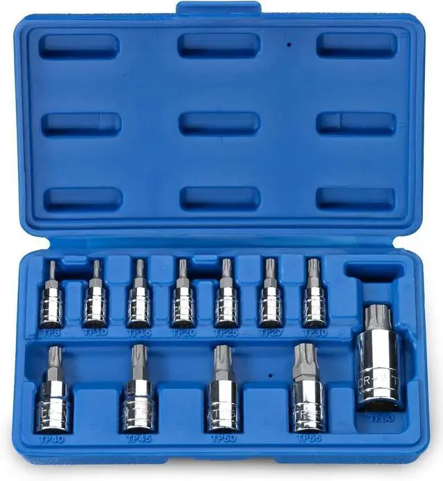 • SET INCLUDES: 1/4 Drive: TP8, TP10, TP15, TP20, TP25, TP27, TP30; 3/8 Drive: TP40, TP45, TP50, TP55; 1/2 Drive: TP60 with a high impact blow mo