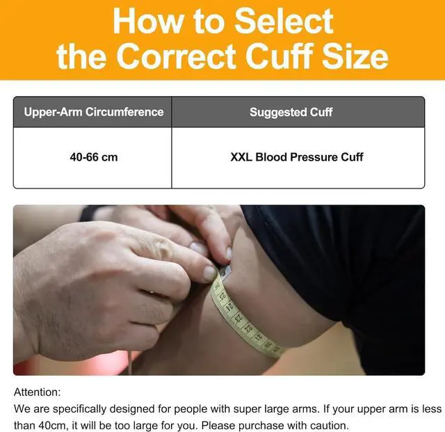 Size: The extra large blood pressure cuff is suitable for people with big arm circumferences of 40-66cm( 15.75 -26 inch).