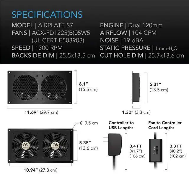Features a multi-speed controller to set the fans speed to optimal noise and airflow levels.