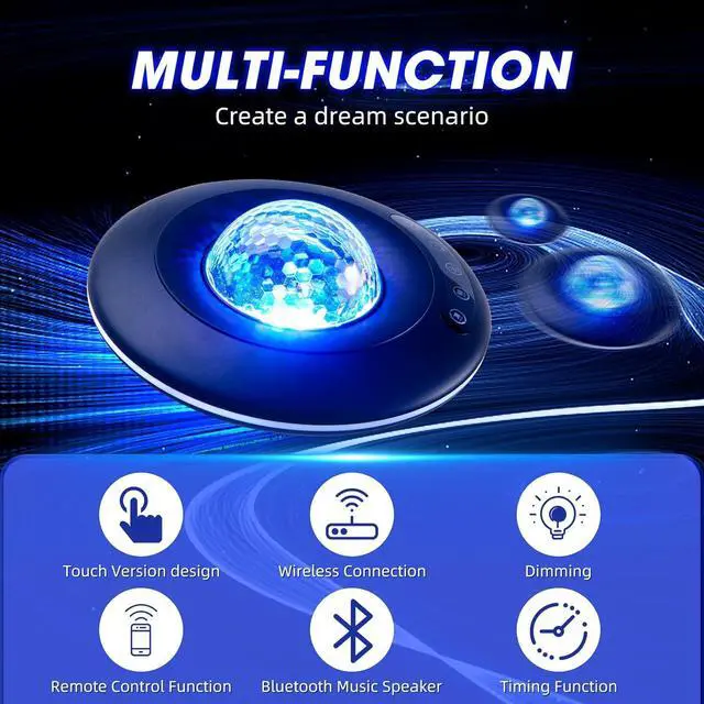 3-in-1 Star Projector Night LightThis star light projector for bedroom has been upgraded to 3-in-1 version: galaxy projector+Bluetooth speaker+timer. It now features special projection lens, able to project star lights effect with many colors and lively starry sky to create a relaxing, peaceful atmosphere. Transform your living room into a beautiful and romantic spaces with peaceful moving lights.