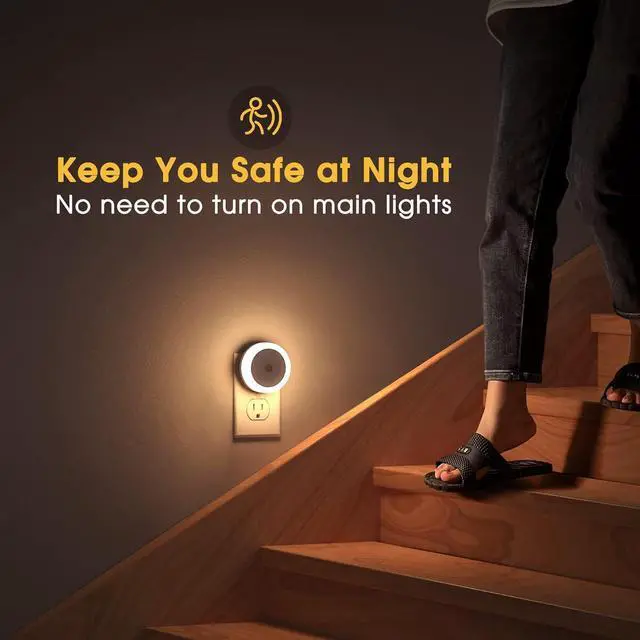 PERFECT BRIGHTNESS: Our plug in night light provides just the right amount of 3000K warm white light (60 lumens) for you to walk around your house without turning your main lights on. Not too bright, not too dim