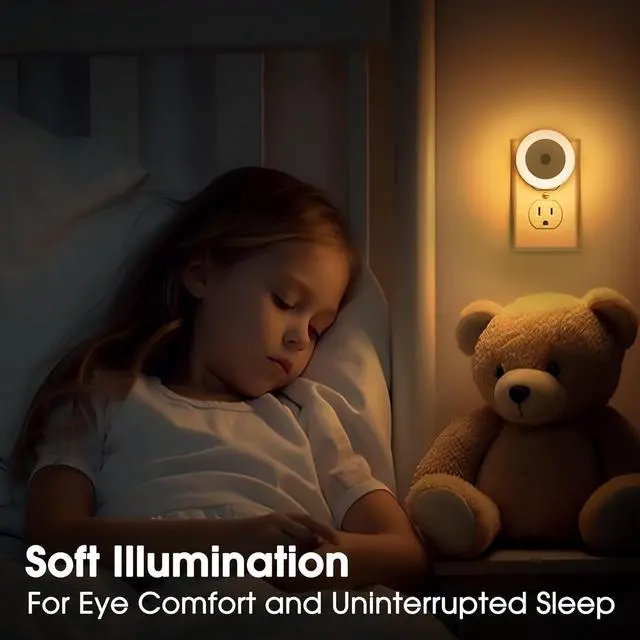 NIGHT LIGHTS PLUG INTO WALL: Our plug in night lights have a compact size and unique night light plug design to avoid obstructing other outlets