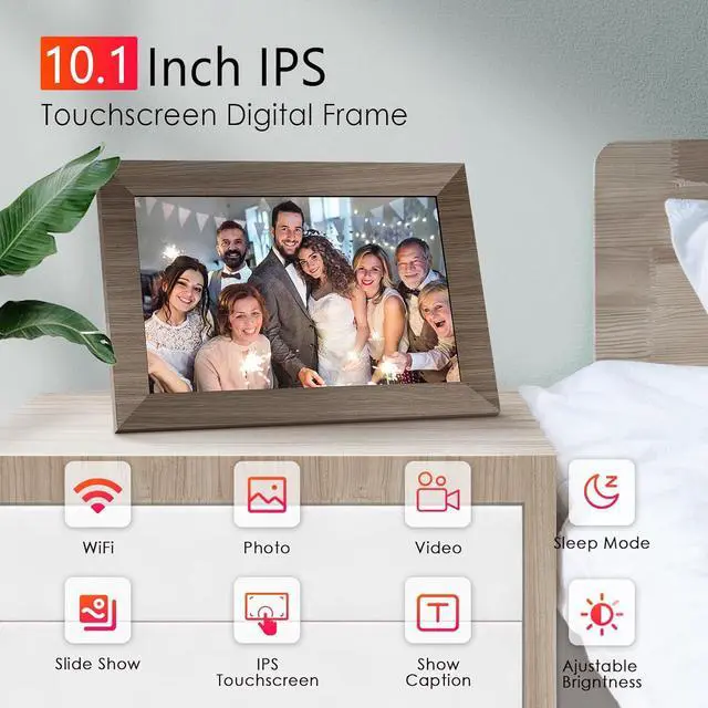 IPS 10.1 Inch Touch ScreenDigital picture frame with 10.1 Inch high definition 1280 x 800 IPS touch screen that can display amazing clear and vivid landscape and portraits, recalling every details of your best moment. Easy-use touch screen provides convenient operation, particularly friendly for older or non techies.