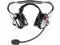 Dual muff style headset with adjustable behind-the-head stainless steel band and over-the-head adjustable Velcro strap.