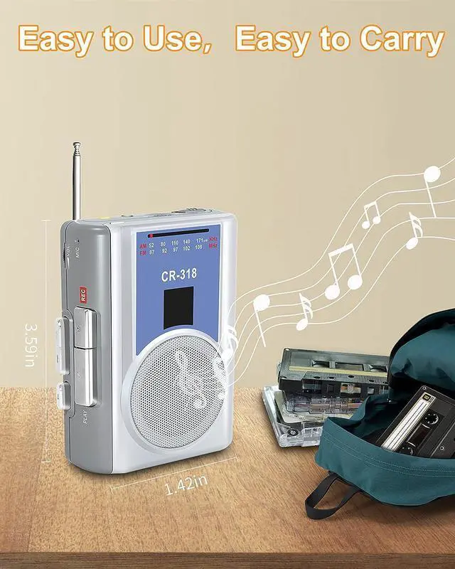 Best AM/FM ReceptionIf you are looking for a tape player and have radio function at the same time. This cassette tape player will be a very good choice for you. In AM/FM mode, the telescopic antenna makes the reception stable and clear, you can easily locate any frequency. This mini tape player can be put in your bag or in your hand, and you can take it with you anytime, anywhere. Others will be very happy if they receive a gift from this cassette/radio player.